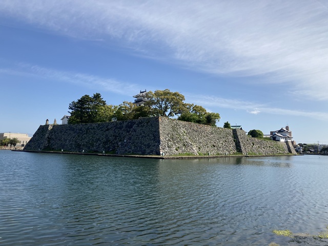 今は内堀しかありませんが、当時は3重の堀に囲まれた海城です