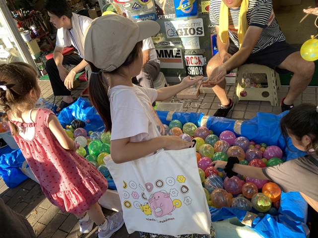 長住祭りで、水ヨーヨー釣り