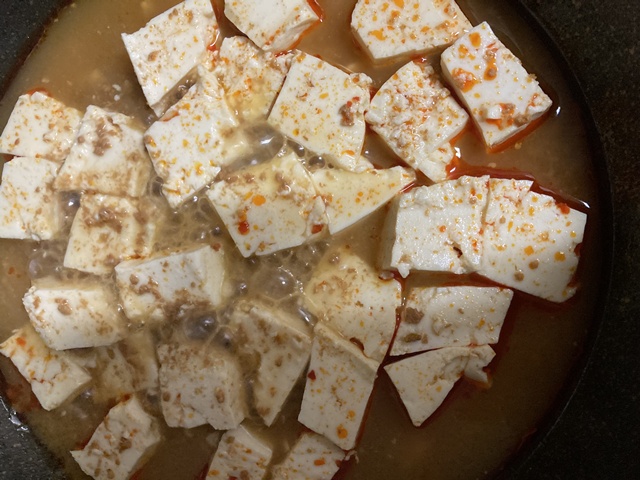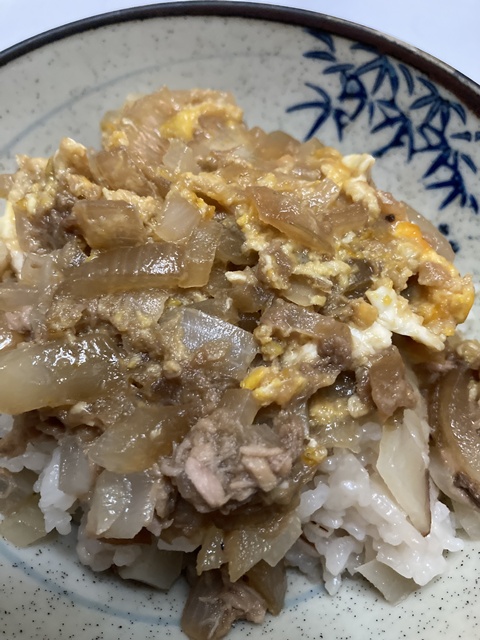 シーチキン丼、シャケの塩焼き、野菜炒め、マーボ豆腐