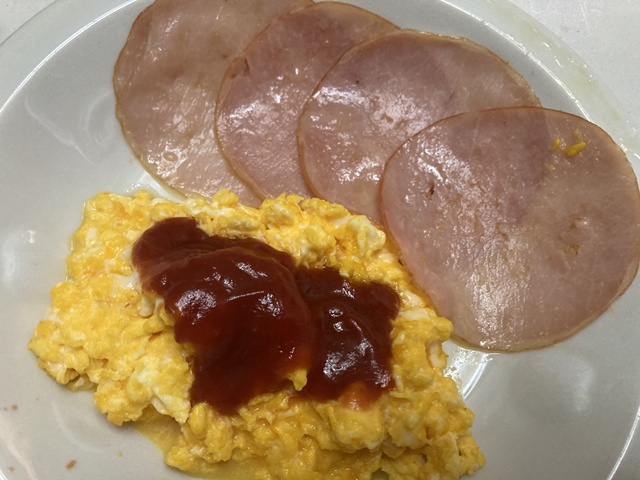 で、ハムを炒めて、と、スクランブルエッグが一番簡単