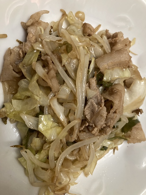 直ぐ風呂に入り、その後野菜炒めを、、で