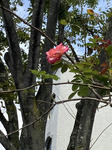 上の方にバラ、雑草の間にレインリリーが、、