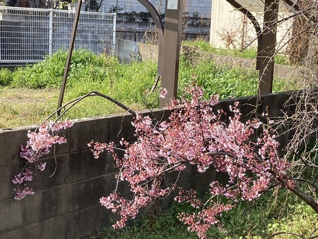 倉庫の裏庭の、サクラが