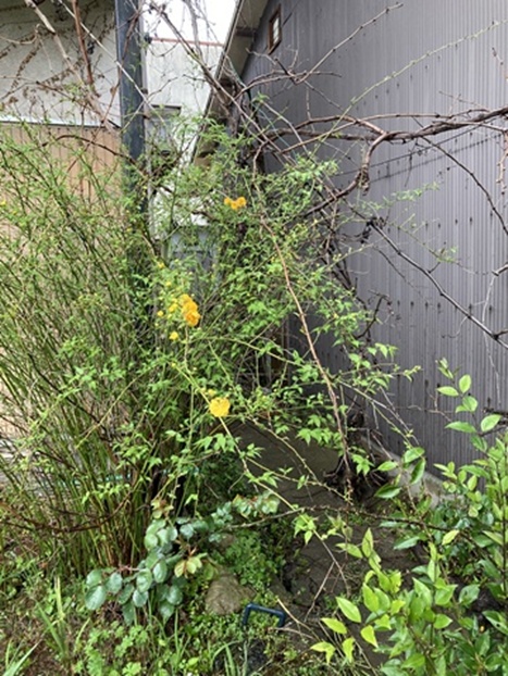 倉庫の裏庭に、八重ヤマブキが咲きました