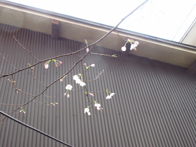 倉庫の裏庭のサクラが咲きました