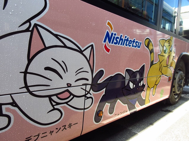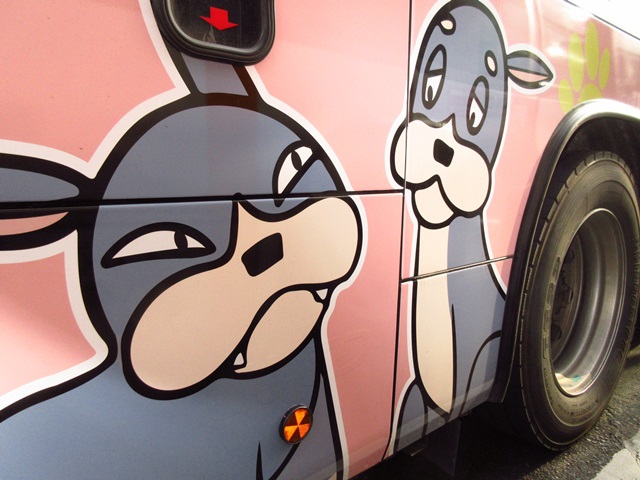 アニメ「イソーロー物語」のバスが一昨日から走っています