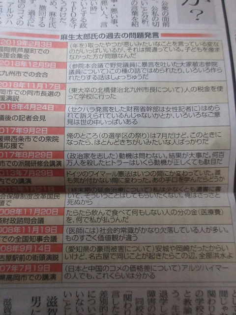 問題発言連発の麻生大臣