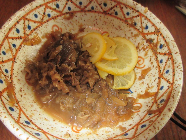 お昼にミカンとレモンステーキ風焼き肉に