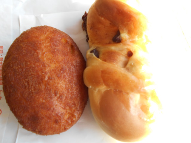 昼食は秋月の「月の峠」のカレーパンと