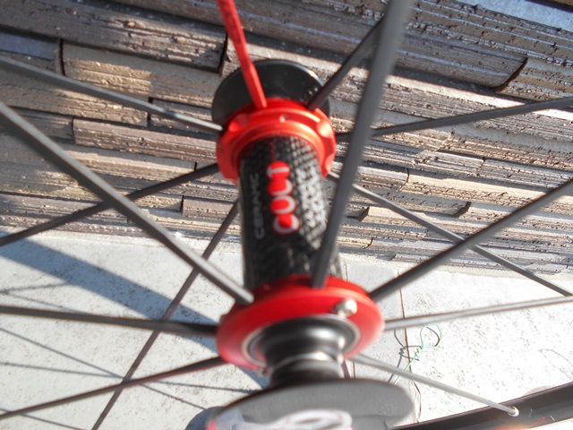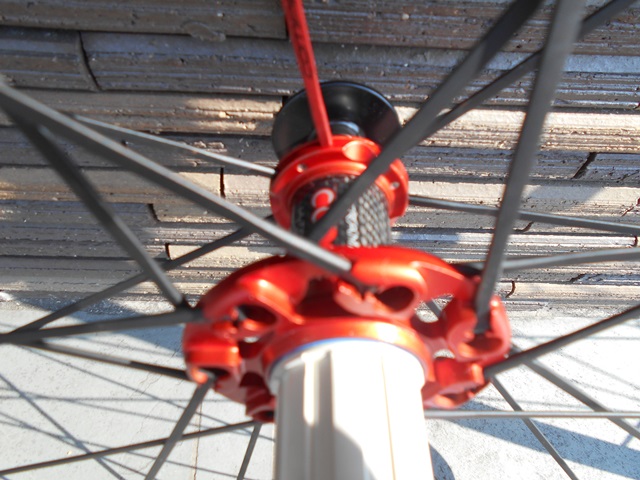 しかも、スポークが1本が赤、それにハブフランジも赤