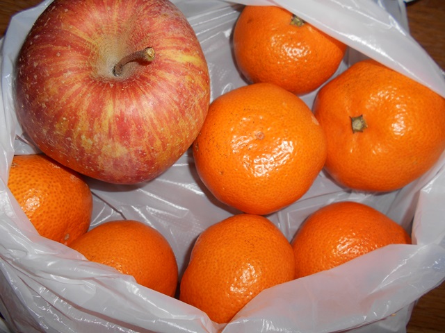 Kさんからリンゴとみかんの差し入れを