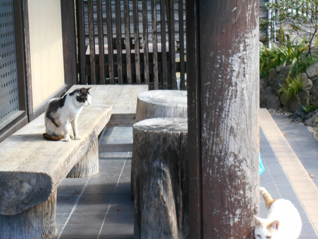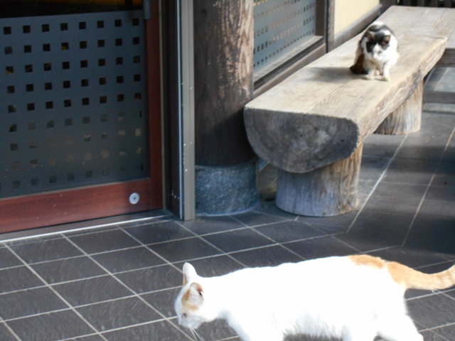 なんと、店の前に猫たちが、、
