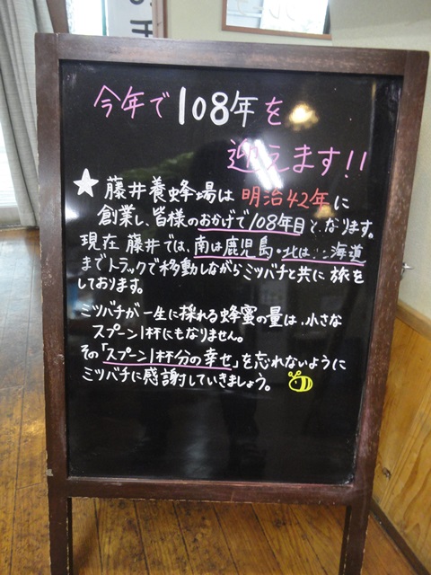 で、帰ろうと看板を読んだら、、、なんと、蜂一匹が