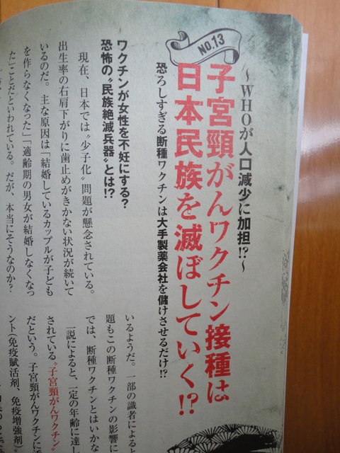 で、内容は、「子宮頸がんワクチン」こそが不妊の原因なのだ。