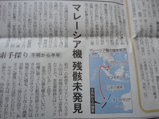 マレーシア航空機行方不明事件の、、、