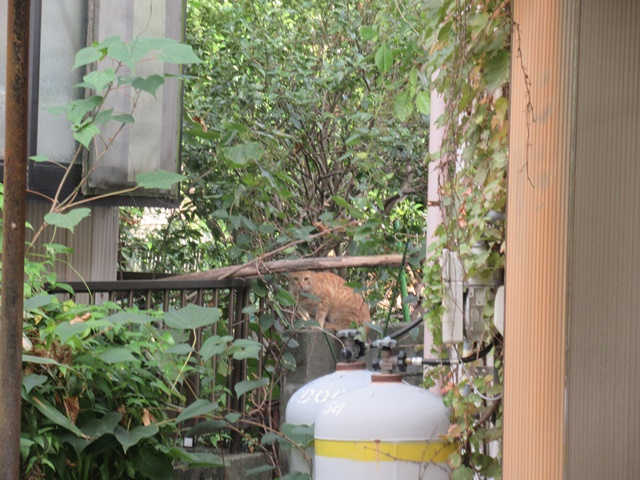 倉庫の裏庭に野良猫が、、