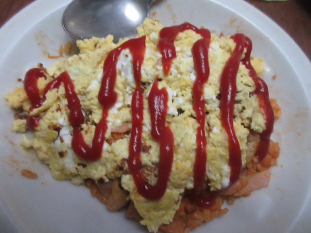 野菜ジュースで炊飯器から炊いて作るオムライス、、