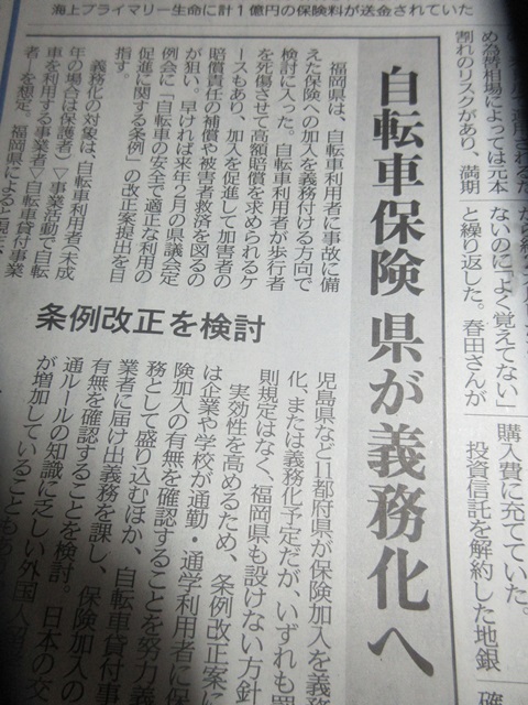 自転車保険義務化か?