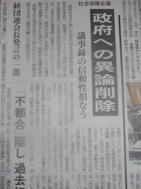 社会保障会議政府への異論削除